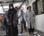 Familia evacuando su hogar